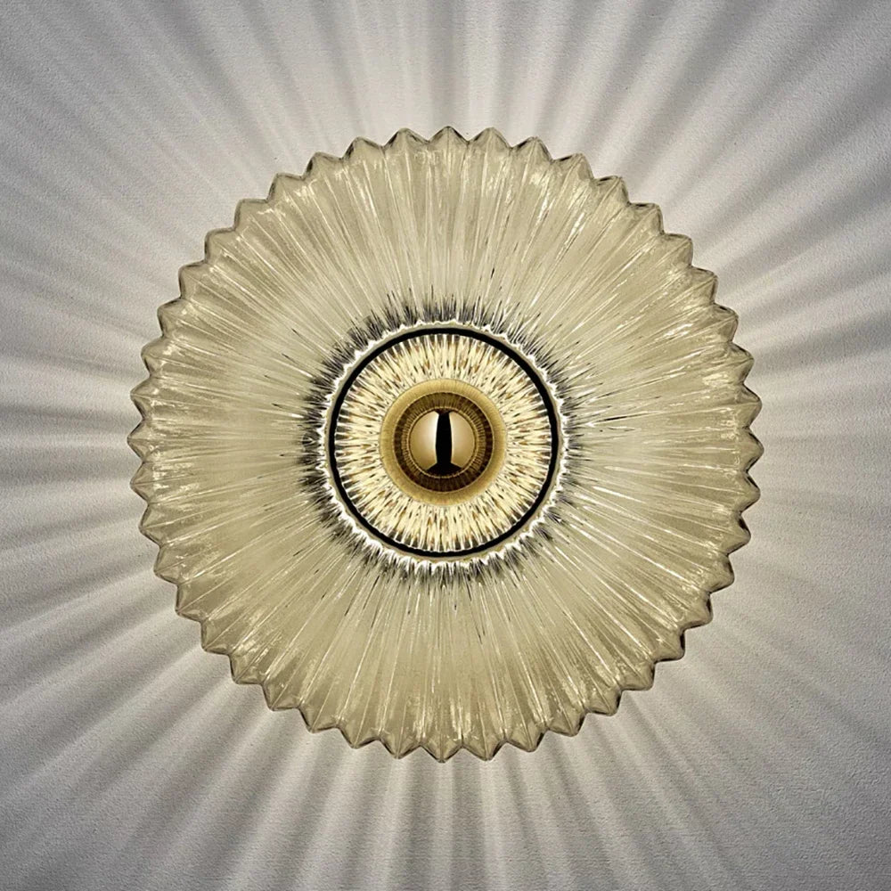 Applique murale ronde en verre, disponible en trois couleurs, pour une ambiance élégante.