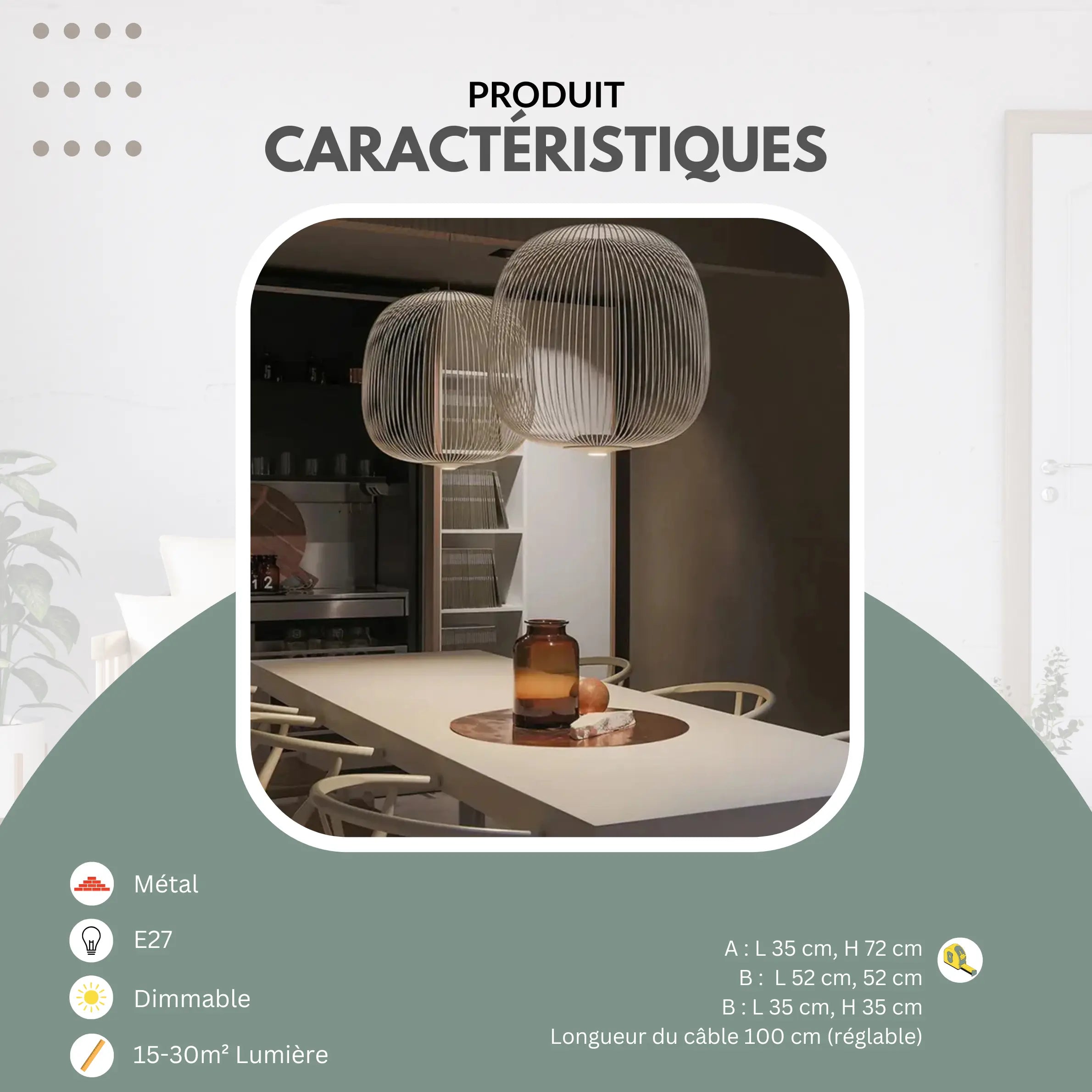 Cette suspension en métal est disponible en plusieurs dimensions et couleurs. Une réplique de très grande qualité.