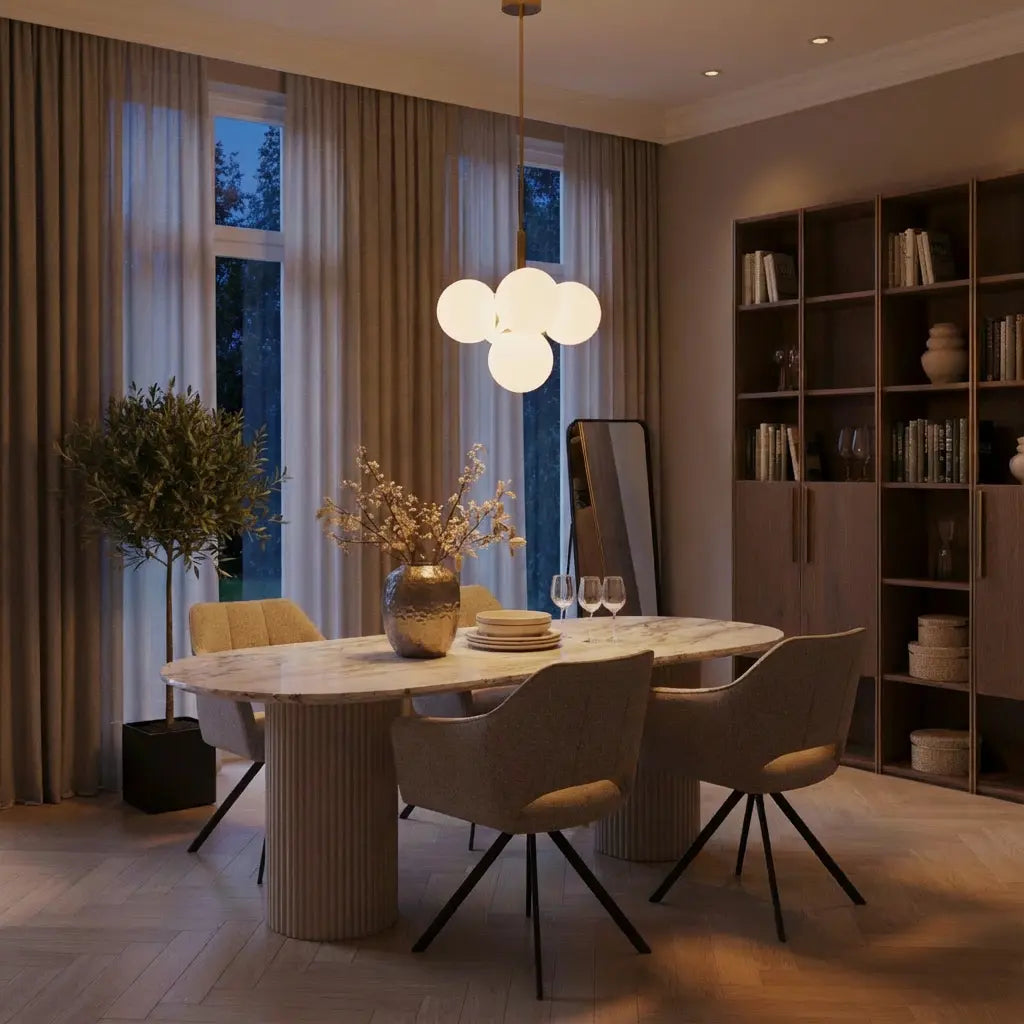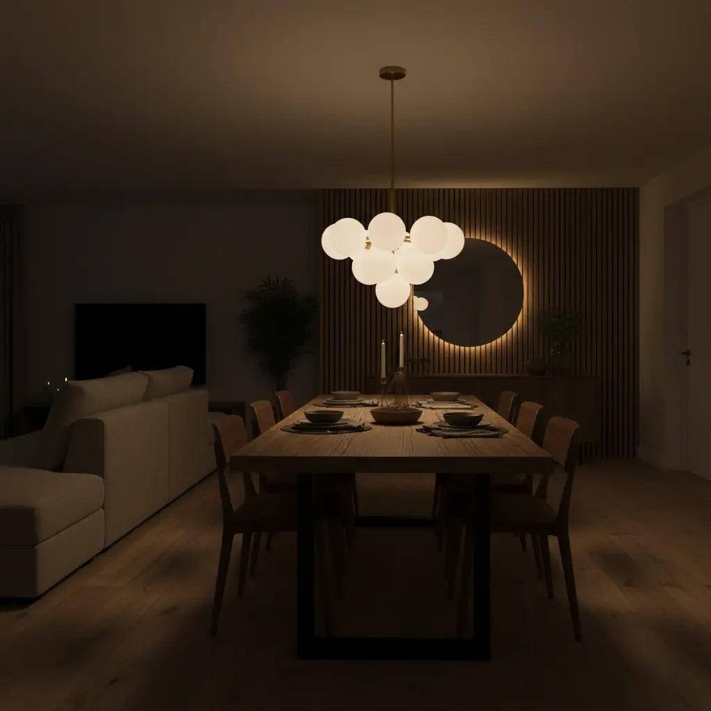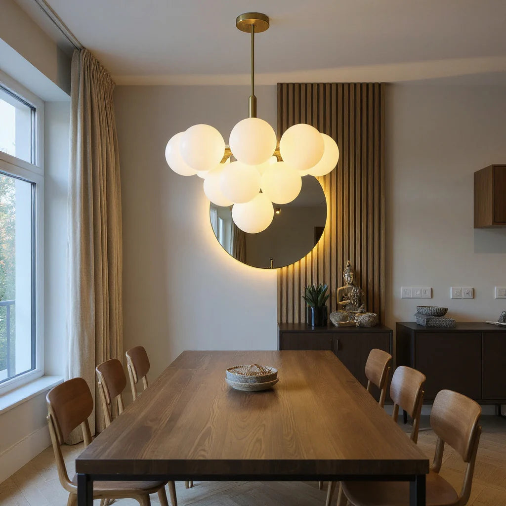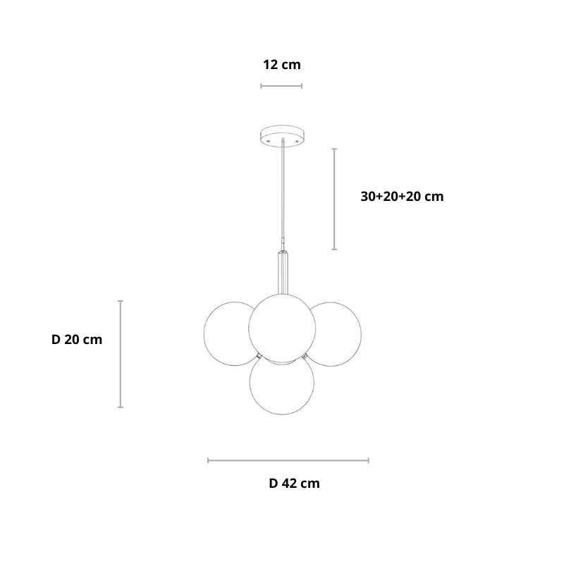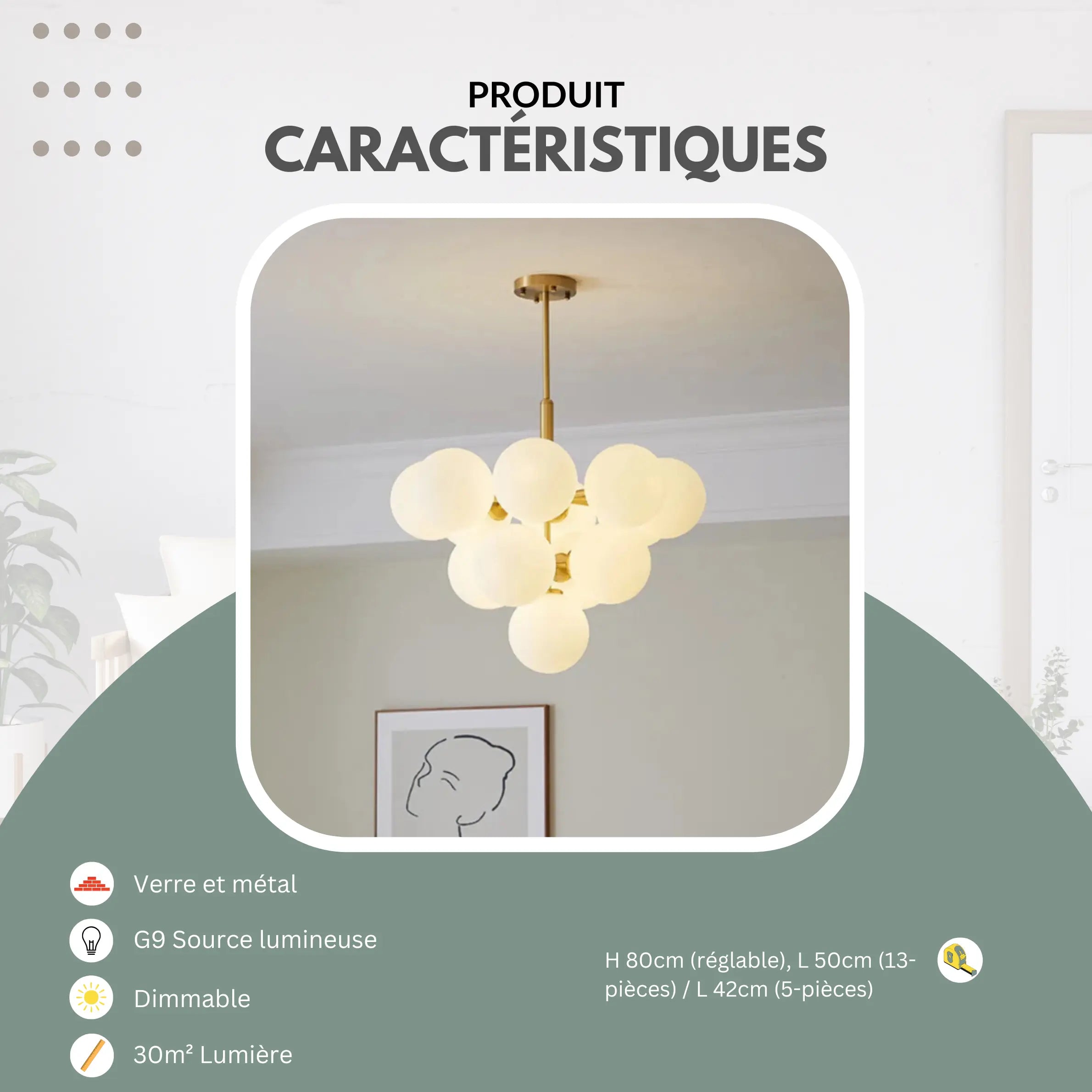 Ajoutez une touche d' élégance contemporaine à chaque espace de votre maison avec notre suspension polyvalente à boules en verre. Le design raffiné, avec des boules en verre qui diffusent une lumière douce et chaleureuse, s'adapte parfaitement à tous les styles d'intérieur, du moderne au traditionnel. Que ce soit le salon, la chambre, la cuisine ou même le couloir, cette lampe ajoute une touche de raffinement sans dominer. La hauteur réglable offre une flexibilité d'installation, tandis que les matériaux de haute qualité garantissent durabilité et style. Illuminez votre maison de manière subtile et élégante avec notre suspension à boules en verre, le complément parfait pour chaque espace.