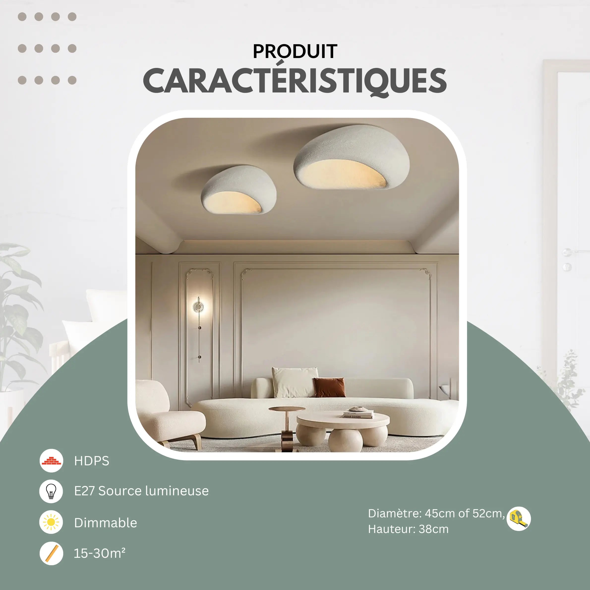 plafonnier Wabi Sabi, lampe plafond E27, luminaire minimaliste, plafonnier design, éclairage salon, lampe métal dimmable